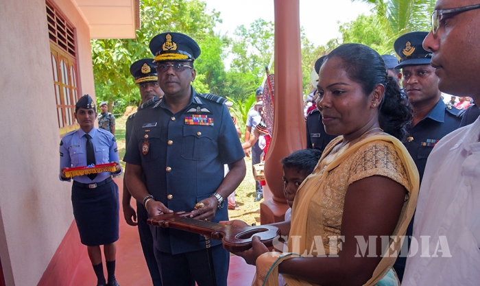 The fourth house constructed under the "Commander’s Housing Project” was handed over to former champion of women cycling, Mrs. UD Sriyalatha as a CSR project. The House Warming Ceremony was held under the patronage of the Commander of the Air Force, Air Marshal Kapila Jayampathy at Thambuththegama today (27 April 2018).