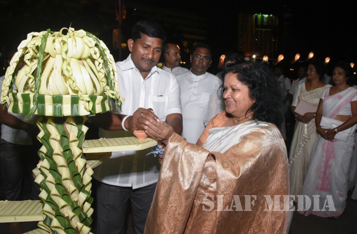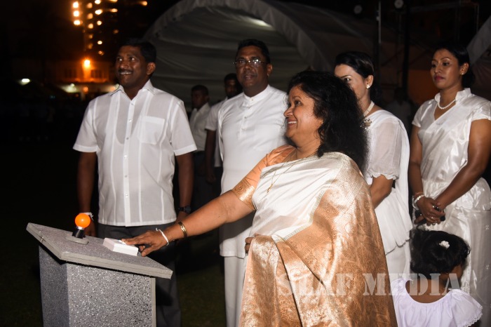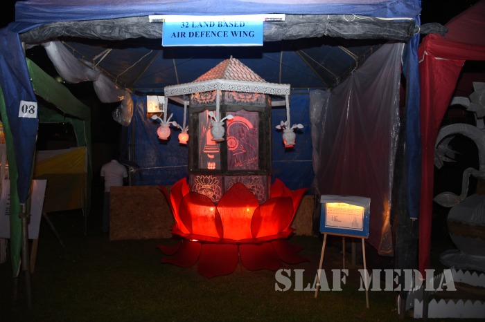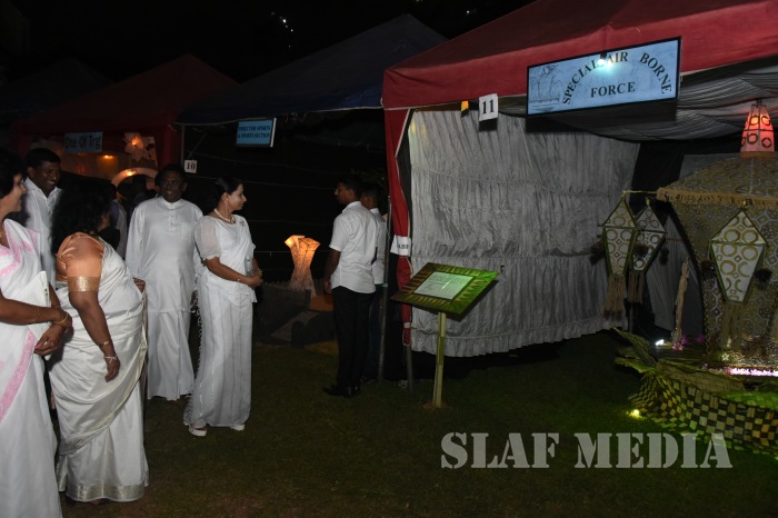 The Chairperson of the Ministry of Defence Seva Vanitha Unit, Mrs. Shalini Waidyaratne, graced the occasion as the Chief Guest. The Commander of the Air Force Air Marshal Kapila Jayampathy and Chairperson of the SLAF Seva Vanitha Unit, Mrs. Anoma Jayampathy received the Chief Guest. The event commenced with the Chief Guest switching on the lights of the SLAF Vesak Kalapaya.