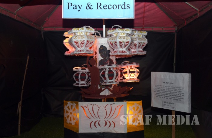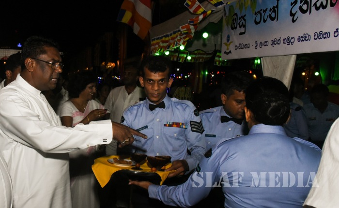 In addition to the “Vesak Bathi Gee Saraniya”, the SLAF Seva Vanitha Unit organized an “Osupen Dansala” in front of the Rifle Green Grounds at SLAF Station Colombo. A traditional oil lamp was lit by the Chief Guest before declaring the Dansala open.