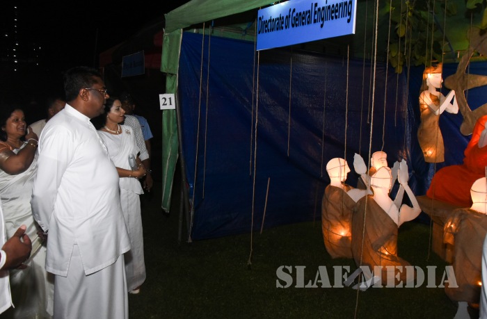 ‘Vesak Bethi Gee Saraniya 2018’ consisted of 13 famous soul-soothing songs sung by various artistes extolling the life and deeds of the Lord Buddha. The songs were sung by the SLAF Band which also enhanced the attractiveness of the evening. A special feature of the show was the ballet choreographed and performed by the SLAF Band showcasing the "Vessantara Jatakaya". On conclusion of the ‘Vesak Bethi Gee Saraniya 2018’ the Chief Guest was accompanied by the Chairperson of the SLAF SVU and the Commander to view the creative Air Force Vesak Lanterns on display at the grounds.