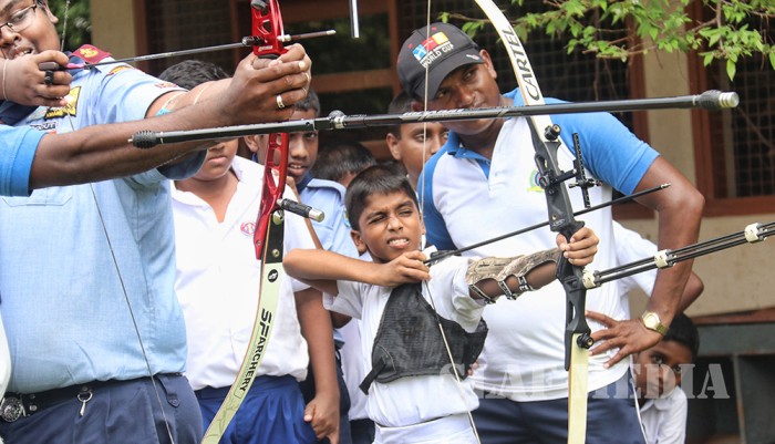 The eminent scout trainers were invited for the camp and a lecture on map reading was conducted by Capt Jayathilake (Retd), Assitant District Commissioner. Swimming and lifesaving instructions and a swimming test were conducted by Swimmer Badge Examiner Mr Reeza Azoor. Knowledge on archery was imparted to the scouts by members of the SLAF Archery pool led by Flight Sergeant Irshan. Mrs Inoka who was a veteran scout leader and teacher, conducted examinations for the master cook badge. Mr. Dharshaa Hettiarachchi, Assistant District Commissioner conducted a lecture on preparation of log books and hike maps. Wing Commander Pagoda lectured the scouts on camp fire preparation.