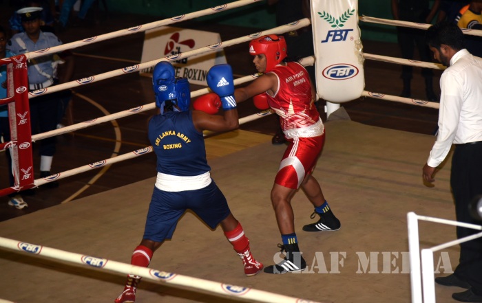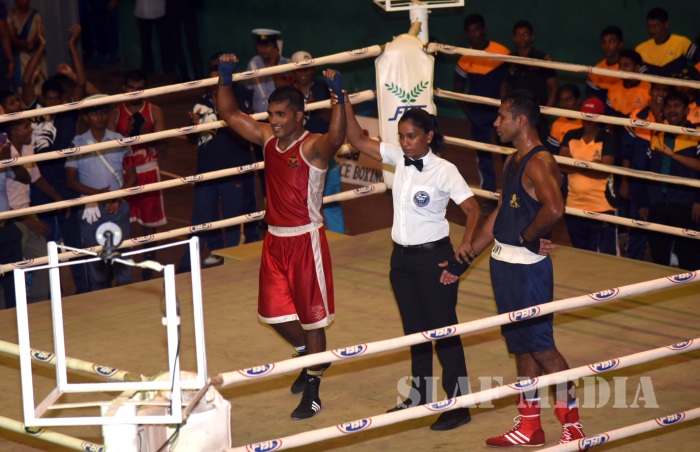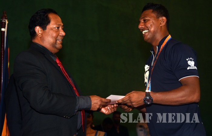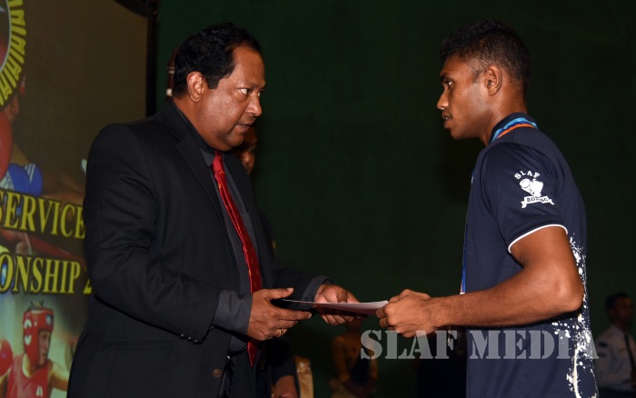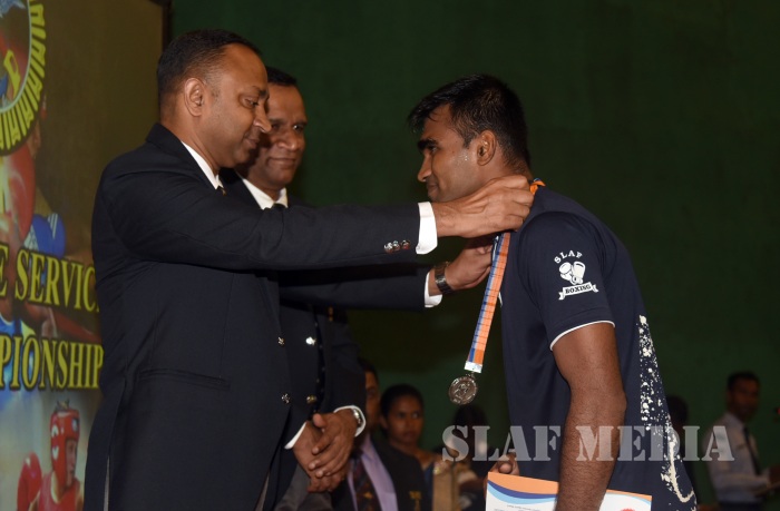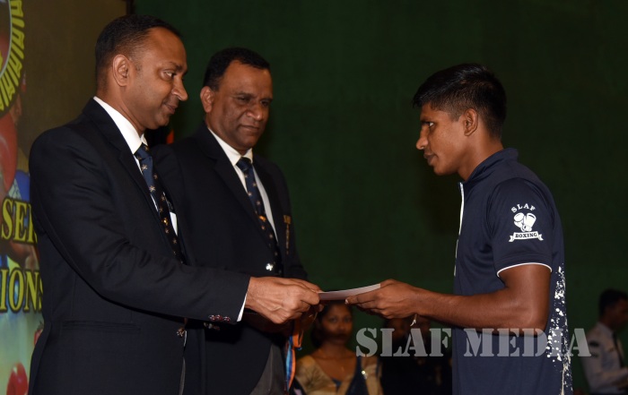 The Boxing Championship-2018 of the 10th Defence Services Games organized by the Sri Lanka Air Force was conducted from 09 May 2018 to 10 May 2018 at Indoor Stadium of SLAF Base Katunayake. More than 46 competitors representing Tri Services took part in this Championship. During the event the Sri Lanka Army won the Men’s Championship while Sri Lanka Navy was able to secure the Runners up position. The Sri Lanka Air Force Boxers (Men & Women)were able to secure 08 Gold, 06 Silver, 05 Bronze including Joint Champions of the Women’s category. Leading Aircraftman Udaya Kumara IPDC and Leading Aircraftwoman Thivankaa WWAK of Sri Lanka Air Force were nominated as the Best Looser of the tournament