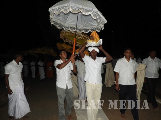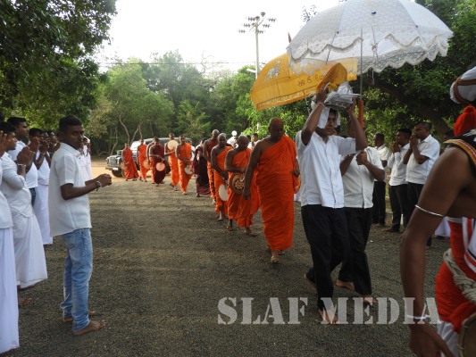 The Pirith Chanting was followed by an alms giving for 12 venerable Maha Sangha and the reliquary was taken to the school premises in a colorful procession. The event was attended by officers, other rankers, all trainees and civilian staff of SLAF Station Mullaitivu.