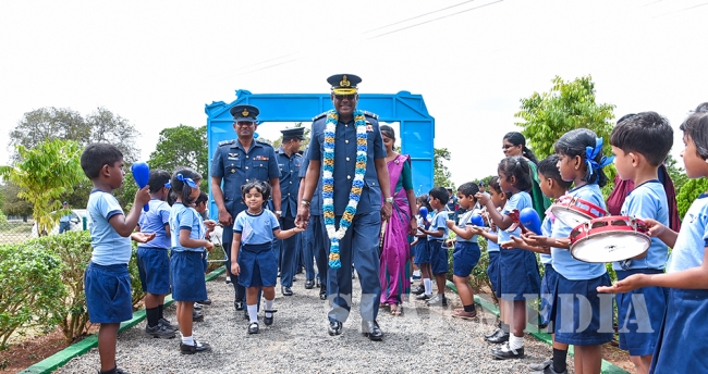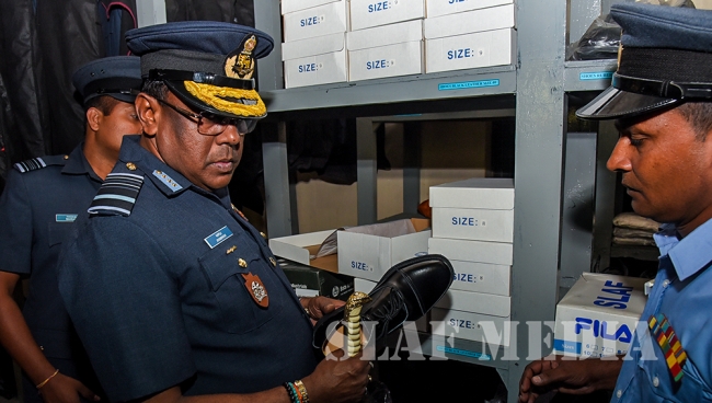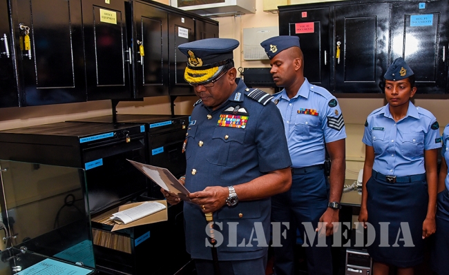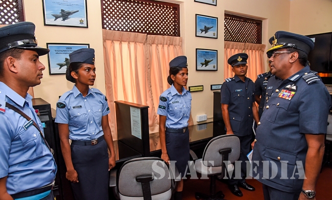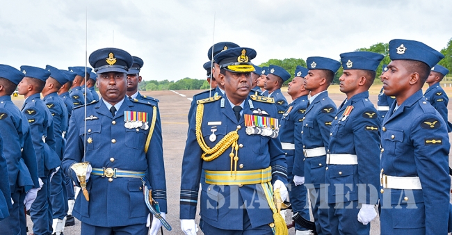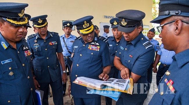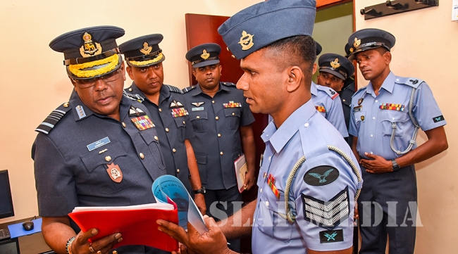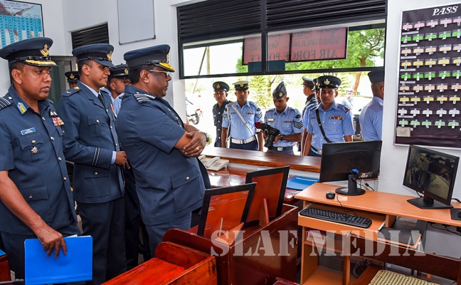 Prior to the inspection proper, the Commander reviewed the Commander's Inspection Parade commanded by the Base Commander of SLAF Base Vavuniya Group Captain LH Sumanaweera.