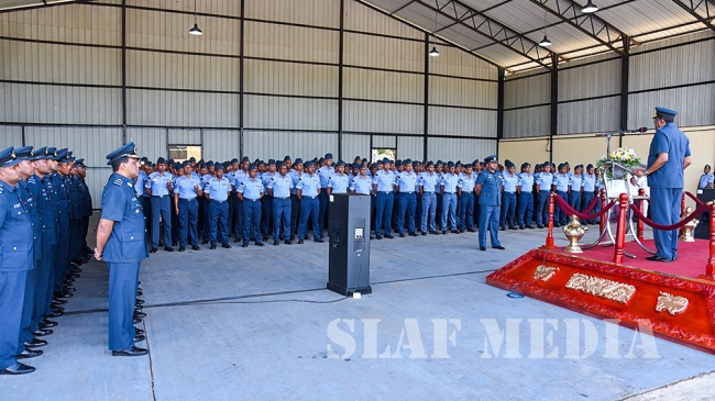 Concluding the Commander's Inspection, the Commander addressed all ranks including the civilian personnel and while encouraging all to strive for excellence he expressed his appreciation for all the hard work expended by all members of the Base towards maintaining and uplifting the standards of the base to the highest standards. At this time he further explained to the gathering that under his leadership, after completing over 67 years since inception, the SLAF has been able to publish our own ‘Air Force Doctrine’ and ‘The Vision 2025’ which are aimed towards standardizing all functions of the SLAF towards achieving greater heights.