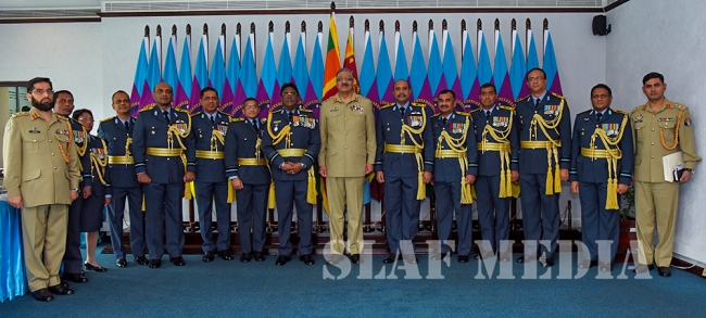 The visiting Pakistan Chairman of the Joint Chiefs of Staff Committee discussed matters of mutual interest with the SLAF Commander. General Hayat, also met with the Chief of Staff of the SLAF, Air Vice Marshal Sumangala Dias and the Air Force Board of Management after which official plaques were exchanged to mark the occasion.