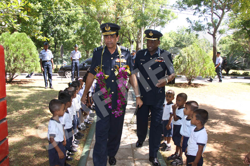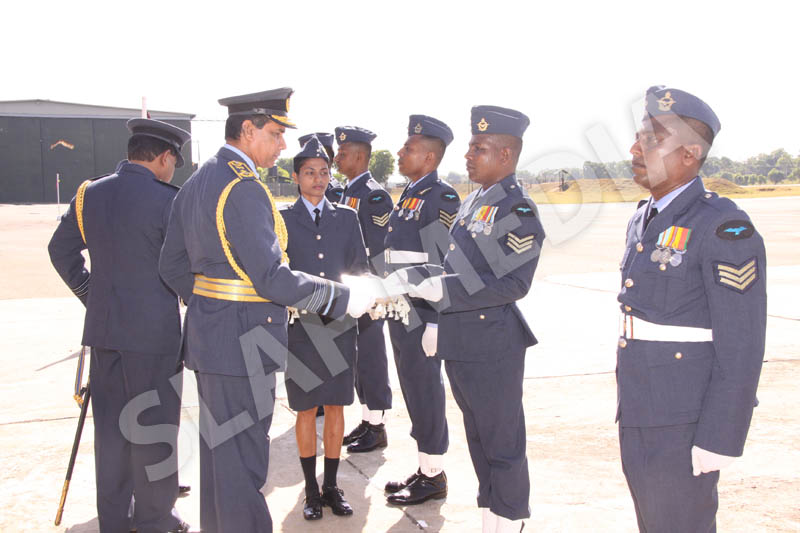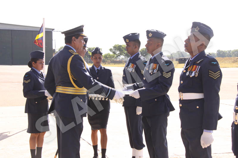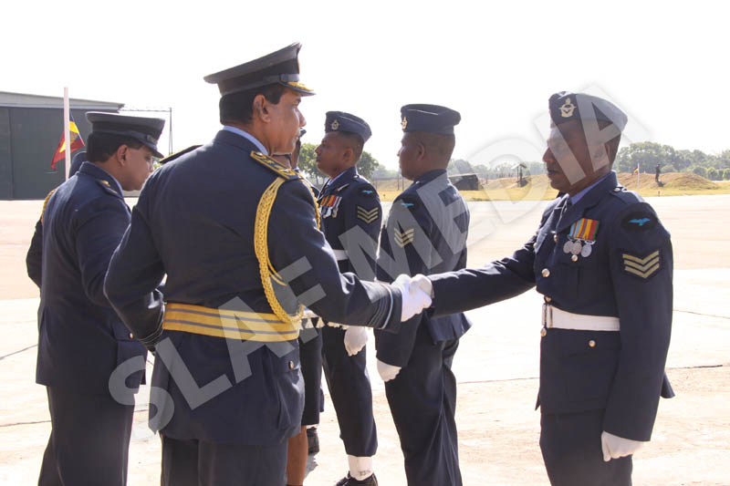 A parade commanded by Base Commander, SLAF Base Anuradhapura, Group Captain RP Liyanagamage welcomed the Commander to the Base premises.