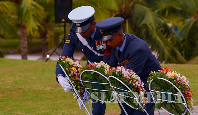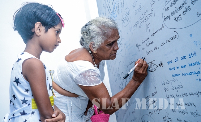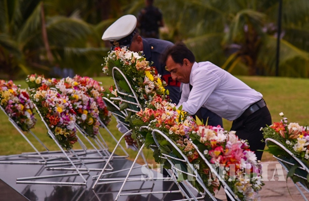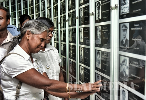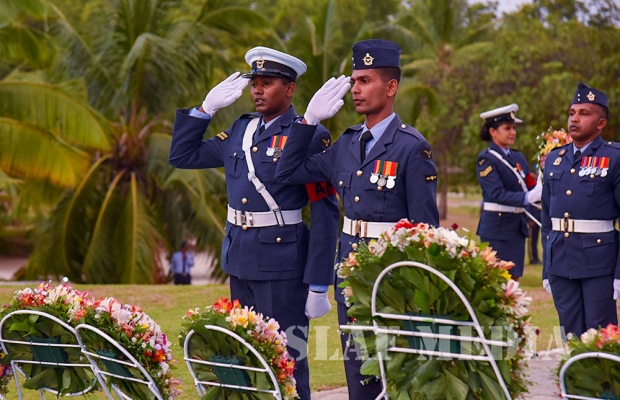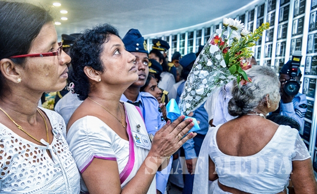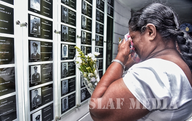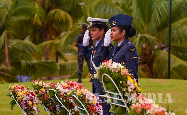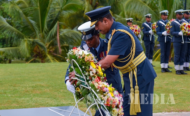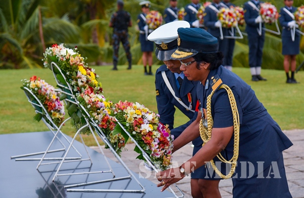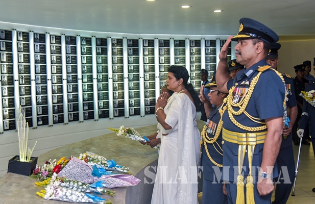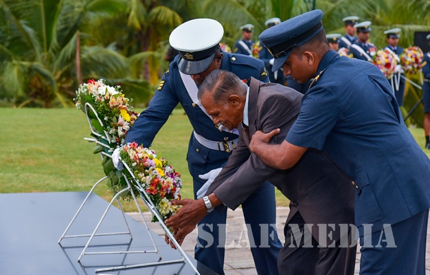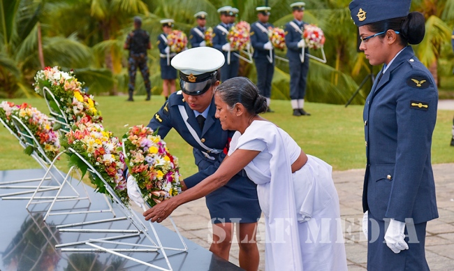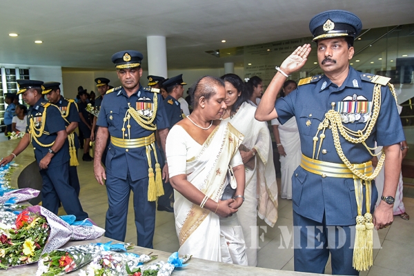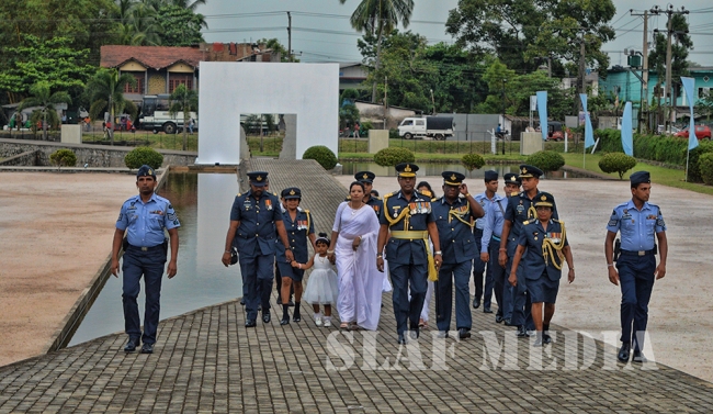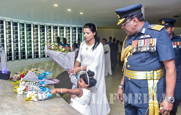The Commander laid the first wreath followed by a Former Commander of the Air Force, Air Chief Marshal Walter Fernando. Chief of Staff of the SLAF, Air Vice Marshal Sumangala Dias followed by the Air Force Board of Management, representatives of all ranks and Spouses and children of the SLAF war heroes also joined in the tribute by laying wreaths and flowers at the monument.