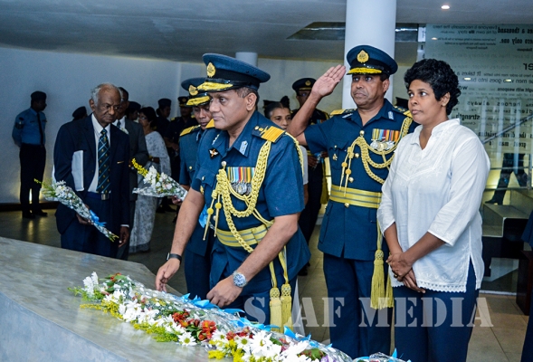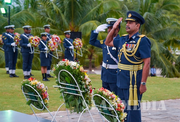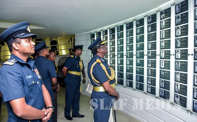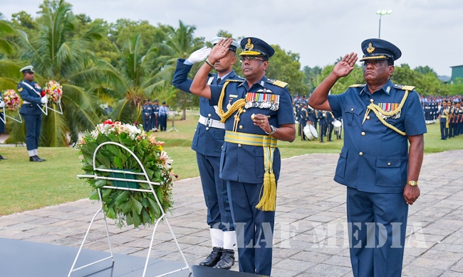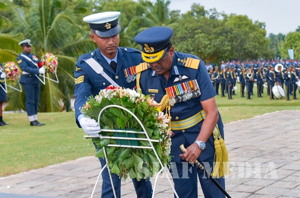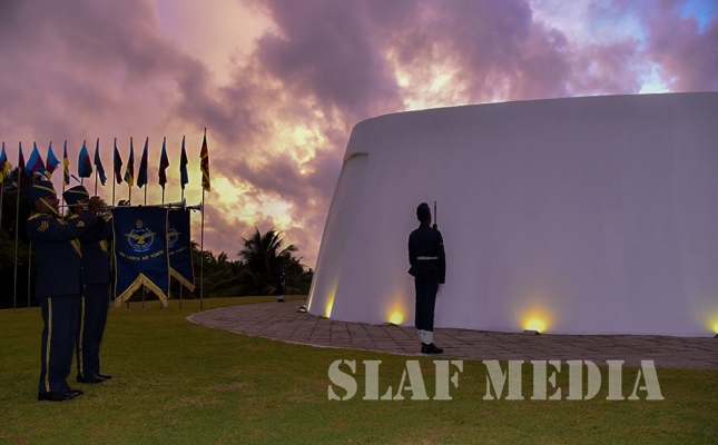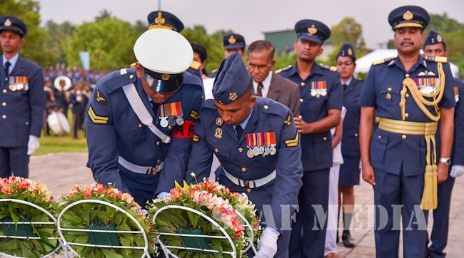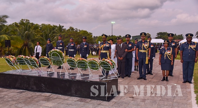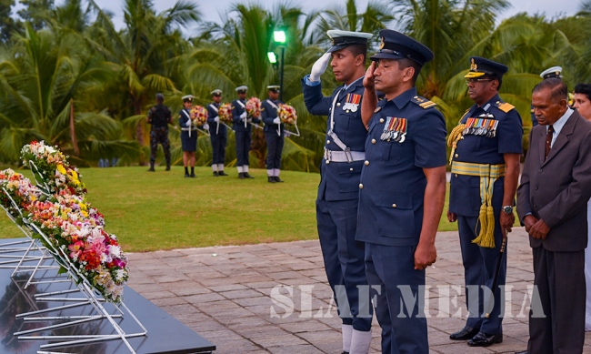 Chief of Staff of the SLAF Air Vice Marshal Sumangala Dias, members of the Air Force Board of Management, Senior Officers and a cross section of the other ranks attended the ceremony which was held at the Sri Lanka Air Force War Heroes Monument at the SLAF Trade Training School Ekala.