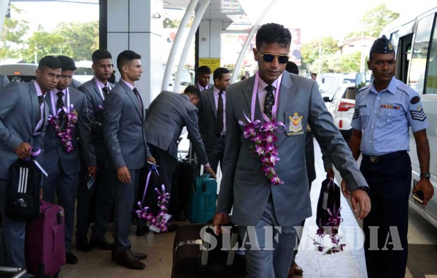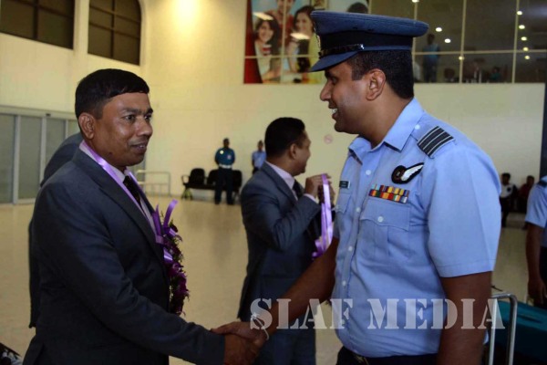 The team comprising the Manager, Squadron Leader SM Shamim Reza and 20 others were garlanded and warmly welcomed by the officials of SLAF Soccer Committee on their arrival at BIA.