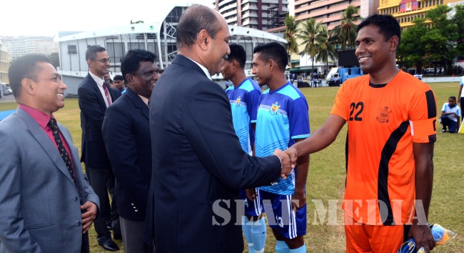 The final encounter took place at the Soccer and Hockey Ground Complex at SLAF Trade Training School, Ekala yesterday (12 July 2018). This encounter was won by the SLAF Team and final score was 1-0. The Director Sports of the SLAF, Air Commodore IK Weerarathne attended as the Chief Guest.