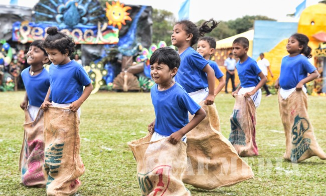Hoisting of the National Flag followed by the lighting of symbolic Olympic torch started the proceedings for the day. A number of children's games and fun activities were organized to give them a day full of enjoyment. The Kids’ Band display and Drill display took the attention of those who were present to witness the event.