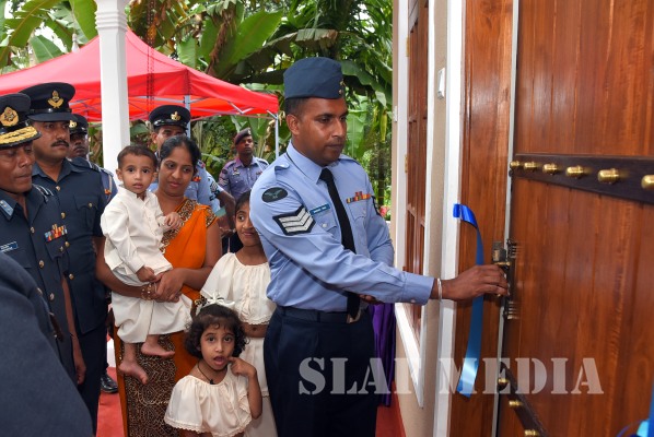A new house constructed under the 'Guwan Lak Sevana' Housing Project of the Sri Lanka Air Force Seva Vanitha Unit (SVU) was handed over to Sergeant Bandara RMUJ (OMT I). The house warming ceremony was held under the patronage of the Commander of the Air Force, Air Marshal Kapila Jayampathy and Chairperson of the SLAF Seva Vanitha Unit Mrs. Anoma Jayampathy at Gelioya today (08 August 2018).