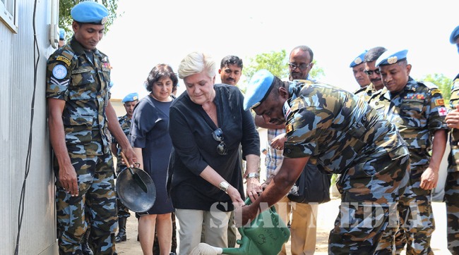 The DMS also joined the customary lunch at the Officers’ Mess and exchanged mementos to mark the occasion. On the invitation of the Contingent Commander, Ms. Scheer planted a sapling to mark her visit, and expressed her gratitude to all contingent members for the devotion and professionalism shown in UNMISS.