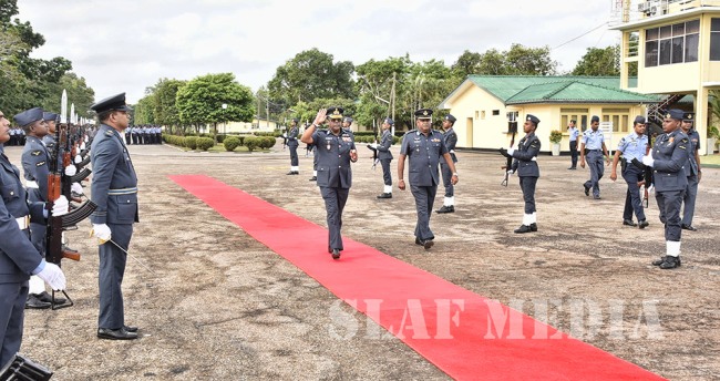 Commanding Officer Group Captain Mohan Balasooriya received the Commander on his arrival and accorded a Street Line.