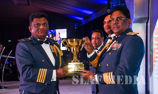 SLAF Trade Training School Ekala and SLAF Station Colombo awarded with the Vernon Rajapaksha Trophy for being the Best Unit in Sports of the year 2016 and 2017 respectively.