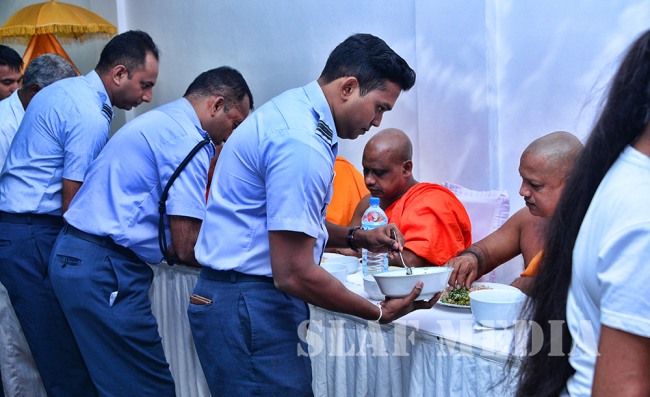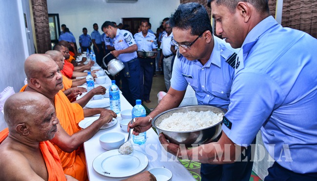 The Commanding Officer of the SLAF Station Sigiriya, Wing Commander DCDB Alwis, Officers, other ranks, spouses and children of the SLAF Station Sigiriya, civilian staff and families also participated for the Ceremony and Almsgiving.