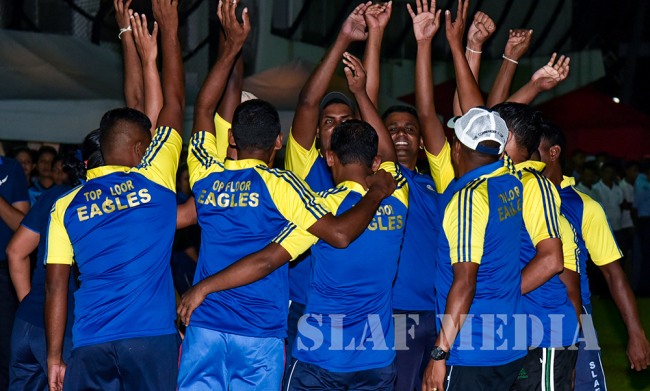 Winning the toss, the Top Floor Eagles decided to bat first and scored 111 runs with Squadron Leader CJEN Dalpadadu top scoring with 38 runs. Chasing a target of 112 runs the Black Eagles reached their mark with 3 balls to spare. Leading Aircraftman Ranaweera top scored for the Black Eagles with 43 runs which included 5 sixes and 2 fours. Leading Aircraftman Ranaweera was also judged as the Man of the Series for his tremendous contribution for the victory of the Black Eagles.