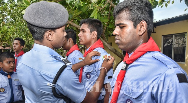 The membership badges for 13 newly enlisted Air Rover Scouts were awarded at SLAF Station Katukurunda yesterday (16 September 2018). Acting Commanding Officer SLAF Stn Ktk, Squadron Leader WLI Udayakumara attended as the Chief Guest for the ceremony. Scout District Commissioner of Kalutara, Mr. H.D. Gunathilake, Assistant District Commissioners, Mr. Namal Gurusinghe, Mr. Dinu Lokuge, and Mr. Aravinda Pathirage, and Group Scout Master of SLAF Station Katukurunda Flight Lieutenant K Weerasekara were also present to witness the occasion. Air Force Officers, other scout officials and parents of the Air Scout Rovers participated in the ceremony.