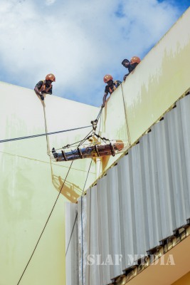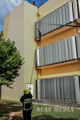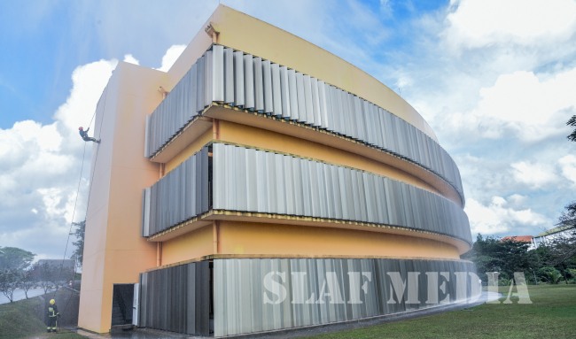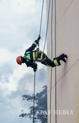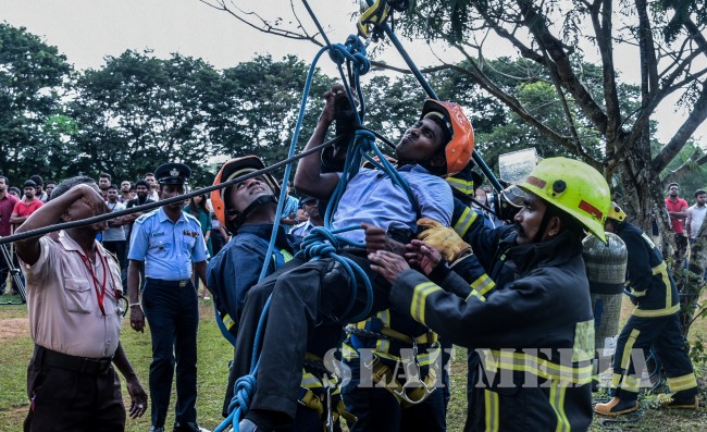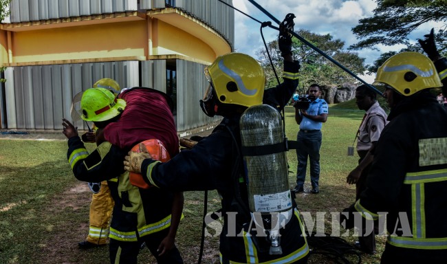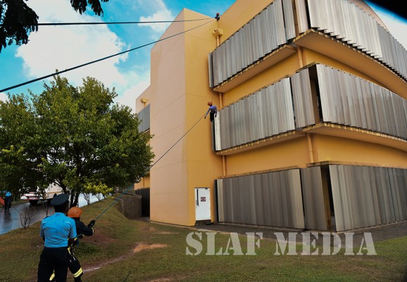 The SLAF Fire Fighters demonstrated several rescue tactics such as aerial rope rescue and high angle rescue using the turn table ladder and showed their Firefighting capabilities.
