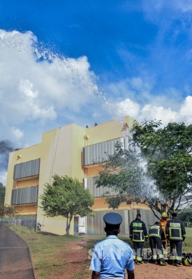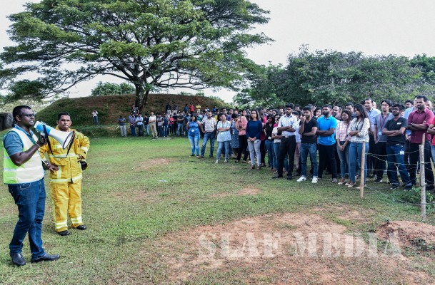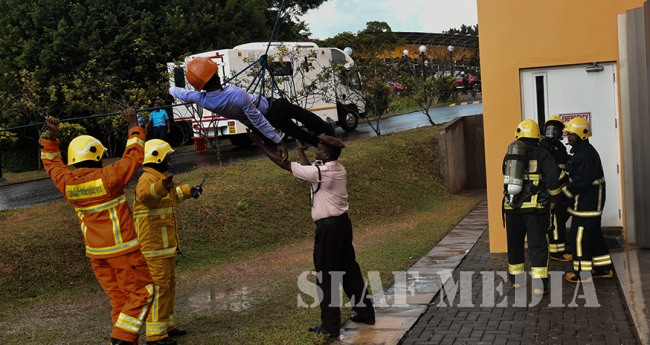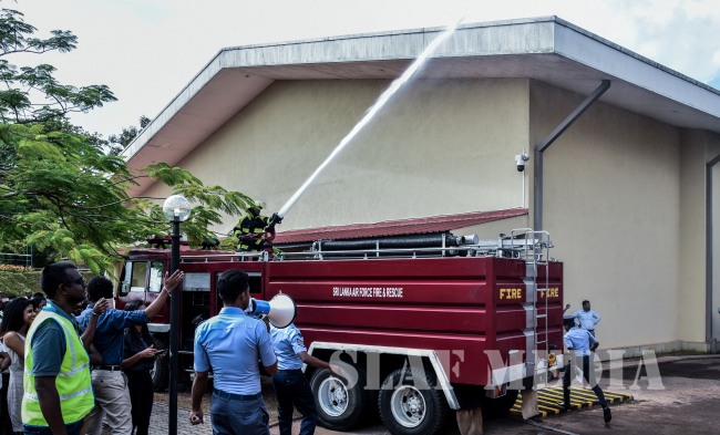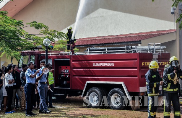 Under the guidance of Director Air Operation, Air Vice Marshal SK Pathirana, the Fire and Rescue Service of the Sri Lanka Air Force assisted in a fire and rescue drill at London Stock Exchange Group, Malabe yesterday (17 September 2018).