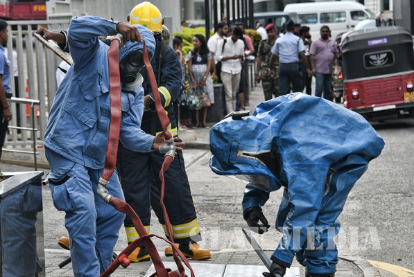 Under the guidance of Director Air Operation, Air Vice Marshal SK Pathirana, the Fire and Rescue Service of the Sri Lanka Air Force assisted in a fire and rescue drill at BOC Head Office building on 05 October 2018.