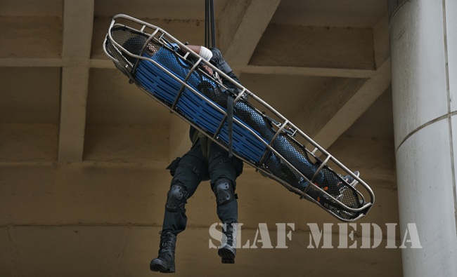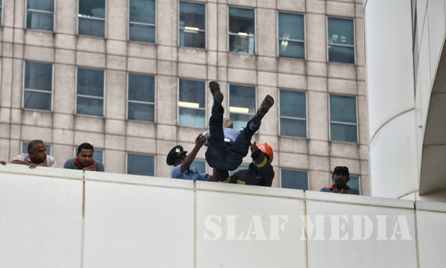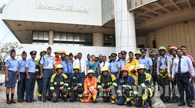 The SLAF Fire fighters demonstrated several rescue tactics and high angle rescue using the turn table ladder and demonstrated their Firefighting capabilities. Head of Security, BOC Head Office, Brigadier LWH Gamage RWP RSP USP (Retired) also witness the event.