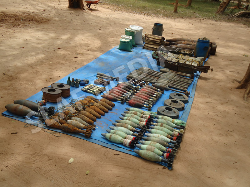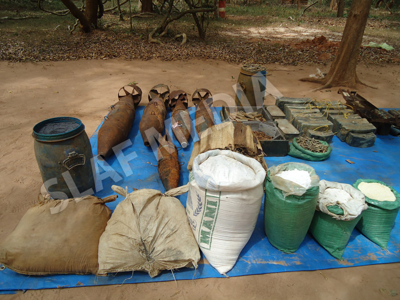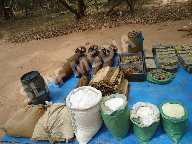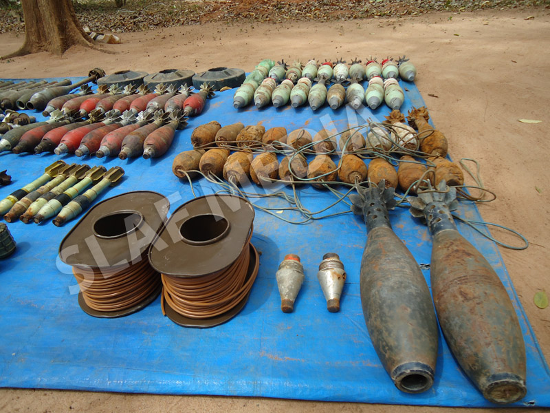SLAF Regiment troops based at the Trikonamadu, commanded by Squadron Leader Vajira Senadeera, captured two caches of arms on 15th & 19th July 2010 from the general area of Iranapallai, Pudukuduirippu. The recoveries were possible after SLAF Intelligence personnel obtained the assistance of rehabilitated ex LTTE cadres.