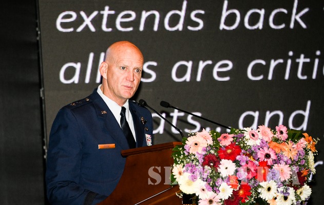 The Symposium which was held under the theme of ‘Air Strategy in Substantiating the Geo-Strategic Importance of Sri Lanka’ commenced the second day with a speech by Guest Speaker, the Air National Guard Assistant to the Commander, Pacific Air Forces, Major General James O. Eifert. In his speech, General Eifert stressed on the importance of the Indian Ocean Region, the geo-strategic importance of Sri Lanka, and how the Sri Lanka Air Force would have to play a major role in controlling Sea Piracy, illegal fishing and illegal trades along sea routes.