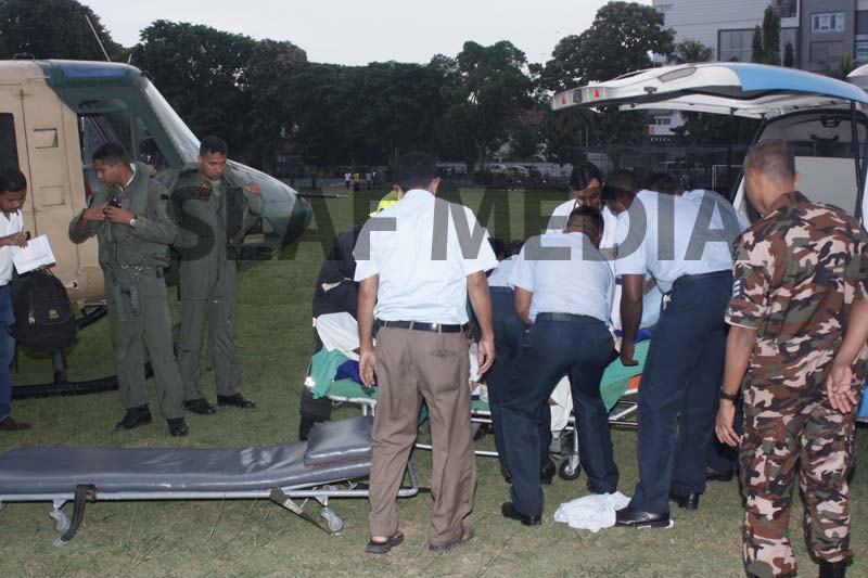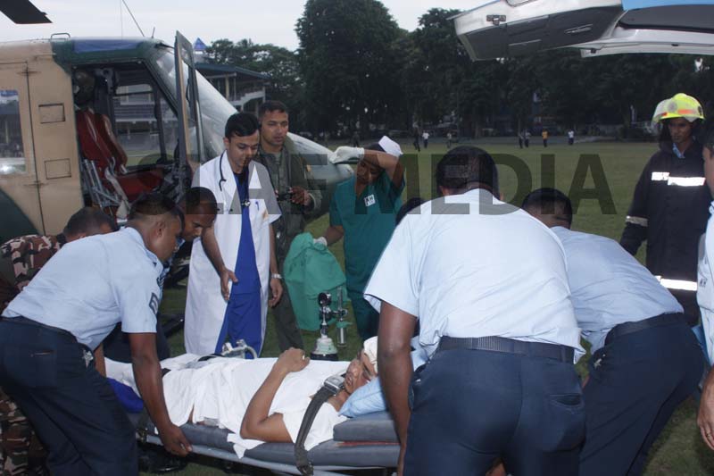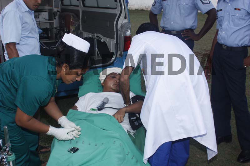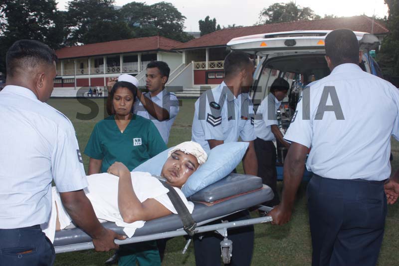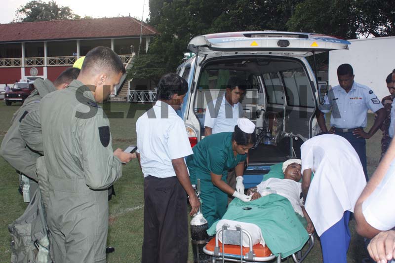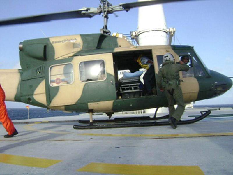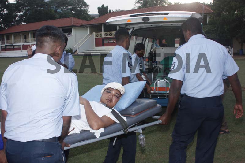 A Philippine, Officer Cadet who was on the crew and had been injured on board in an accident was evacuated and flown to Colombo General Hospital for medication.