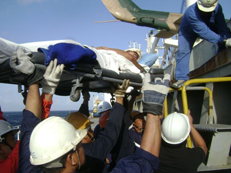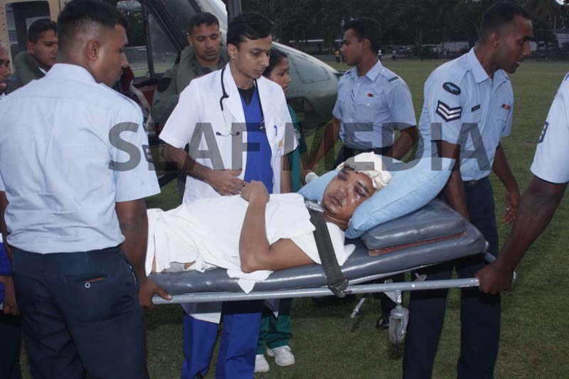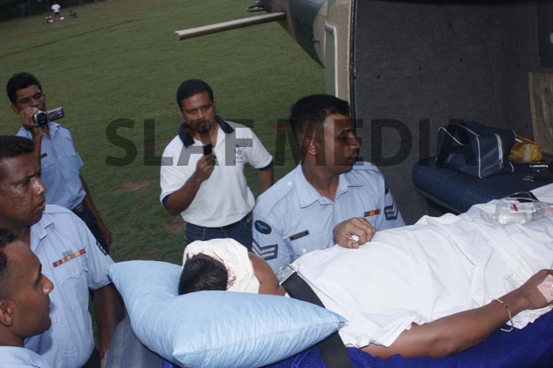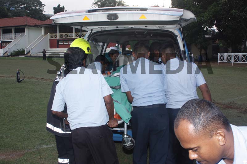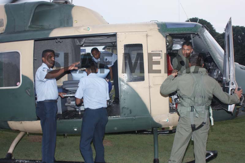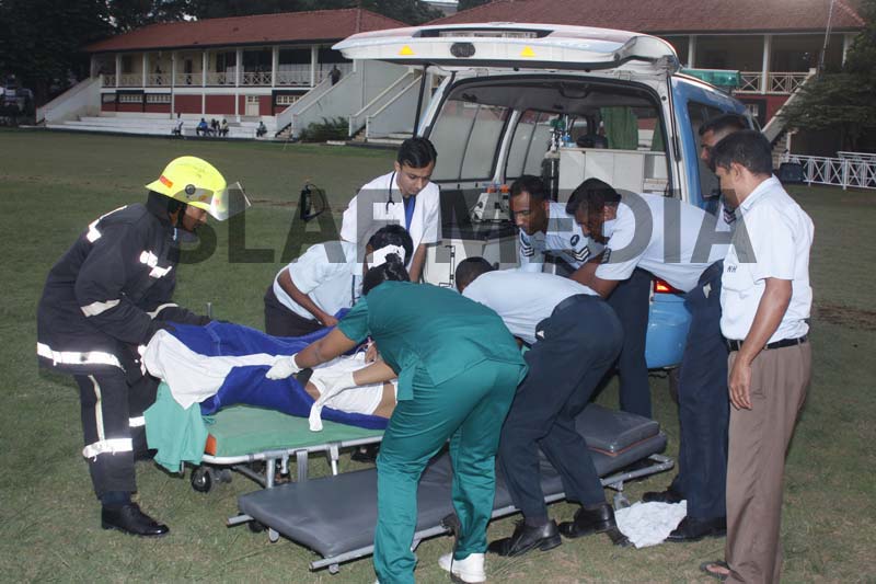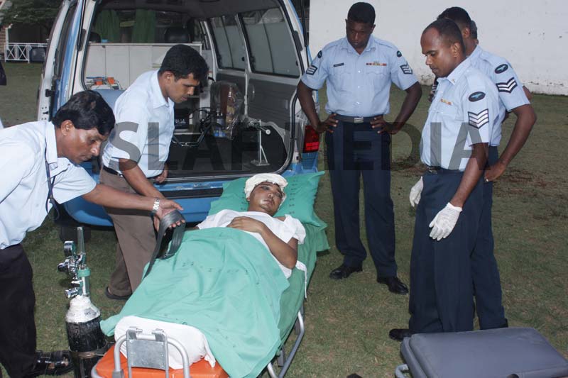 A Philippine, Officer Cadet who was on the crew and had been injured on board in an accident was evacuated and flown to Colombo General Hospital for medication.