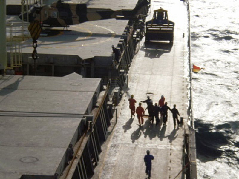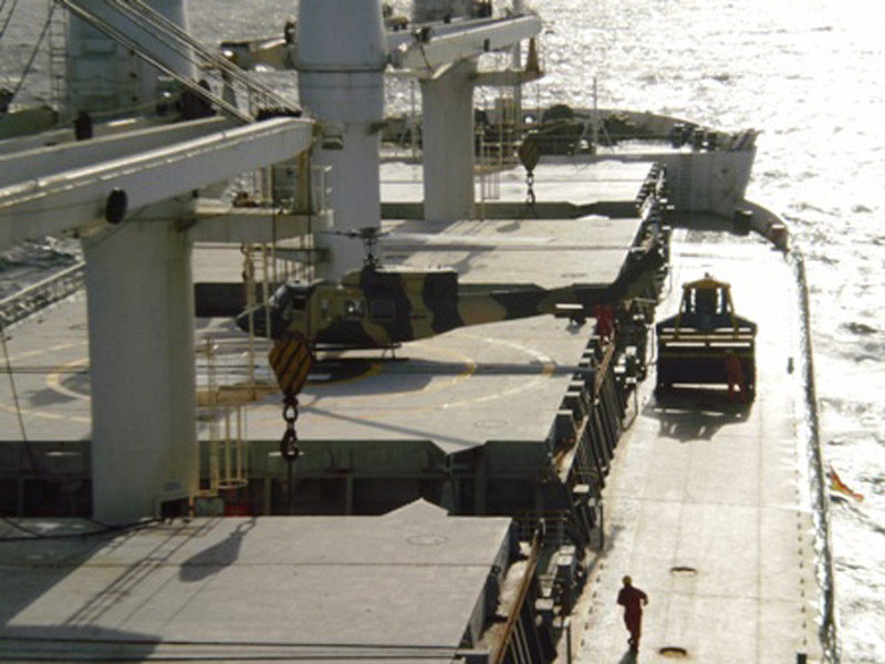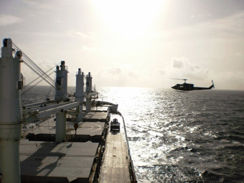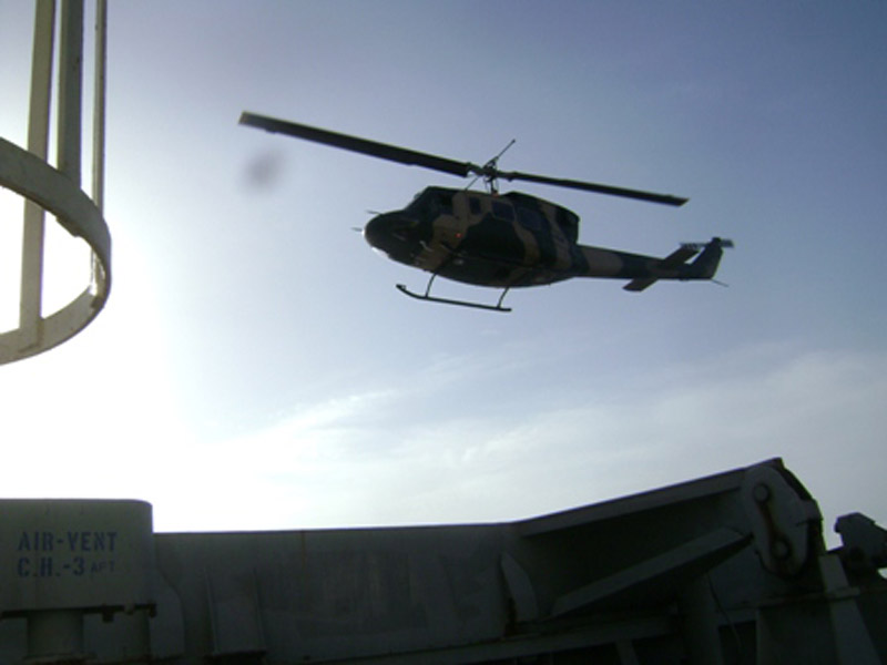 A Bell 212 from the no 4 Helicopter Squadron flying for Helitours landed on the “Equinox Dawn” which was sailing to the port Camedon, United States from Singapore.