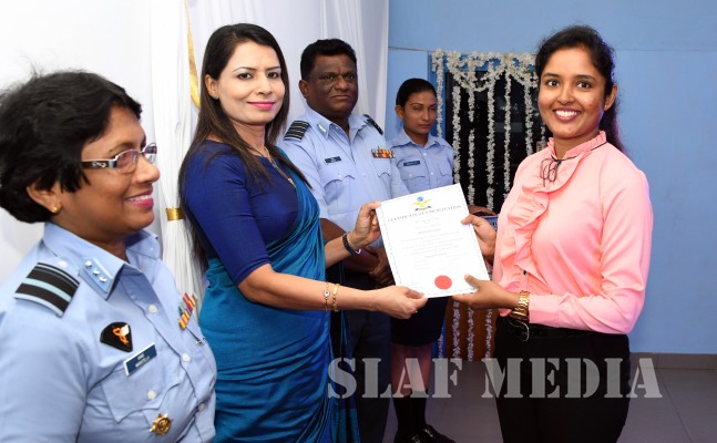 21 participants including daughters of serving and retired service personnel and 16 young airwomen who passed out received certificates. Instructors were felicitated by the Chairperson of the SLAF Seva Vanitha Unit with certificates and gifts. Director Welfare and CO SLAF TTS Ekala with other officers also participated. Sri Lanka Ex Air Force Association Ex WO A Javahir was also invited to participate.
