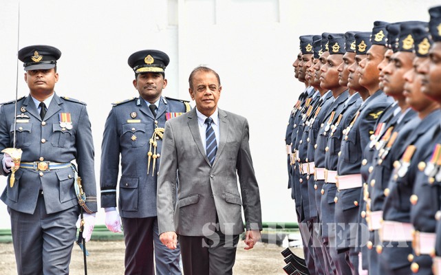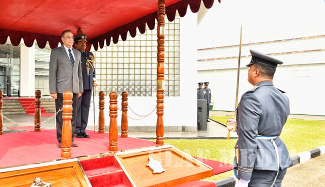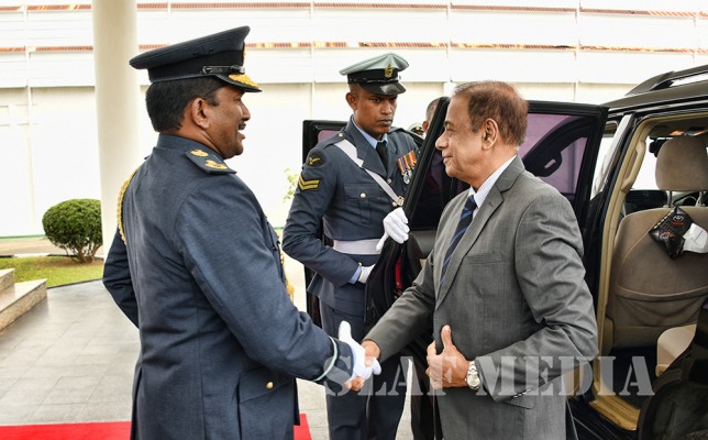 Secretary to the Ministry of Defence, Mr. Hemasiri Fernando made an official visit to Air Force Headquarters yesterday (14 November 2018). The Secretary to the Ministry of Defence was received upon arrival by the Commanding Officer of SLAF Station Colombo, Air Commodore Waruna Gunawardana and was conferred a Guard of Honour by the Colour Wing of the SLAF. Mr. Fernando was welcomed to AFHQ by the Commander, Air Marshal Kapila Jayampathy at the AFHQ Lobby and escorted to the Air Secretariat.