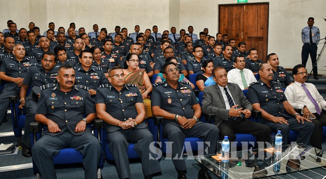 Thereafter, the Secretary Defence was escorted to the AFHQ Auditorium where he was briefed by Director Air Operations, Air Vice Marshal Sudarshana Pathirana on the contributions made by the SLAF towards the entire spectrum of National Security and the current situation of the SLAF.
