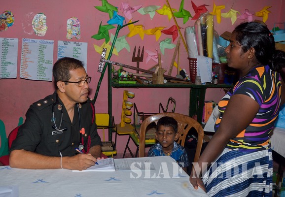 The Medical Outreach program consisted of Outpatient facilities, Specialist Radiology Clinic (including Ultrasound Scanning and X Ray facilities), Specialist Medical Clinic, Specialist Paediatric Clinic, Specialist Obstetric & Gynaecology Clinic, Specialist Orthopaedic Clinic, Specialist Ophthalmology Clinic, Specialist Dermatology Clinic, Physiotherapy facilities, Medical Laboratory facilities and Emergency Treatment facilities. In addition the program included donation of spectacles, donation of nutritional supplements to children and pregnant mothers as well as sessions on health education. The 62 Division of Sri Lanka Army provided logistical support to the program.
