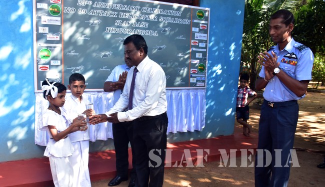 Annual Community Service projects of No 9 Attack Helicopter Squadron was carried out on the 29th of November 2018. The entire book list, school uniform materials, bags and shoes were given to school children. Further, upon a request made by the Principal of the Bebiyawewa Primary School, a laser printer was donated to the school. The repairing of the water purification plant was a long outstanding project due to the non-availability of adequate clean drinking water at the Kumudupura Primary School.