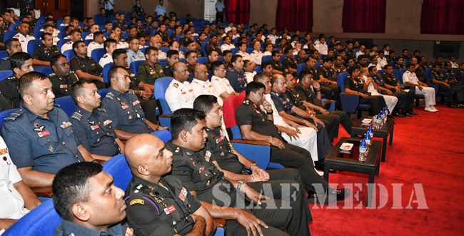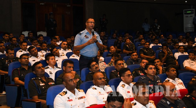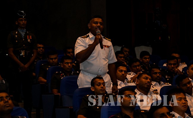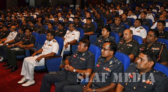 The Commandant of the DSCSC Major General JR Kulatunga, the Chief Instructors of the Army, Navy and Air Wings, Brigadier JC Gamage, Commodore DMLA Dissanayake and Air Commodore CB Labrooy, faculty members and the permanent staff were also present during the address.