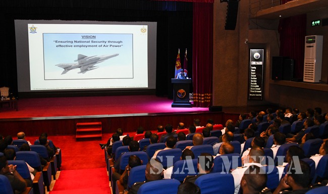 The Commander of the Sri Lanka Air Force, Air Marshal Kapila Jayampathy addressed the officers of Course No.12 of the Defence Services Command and Staff College today (04th December 2018).