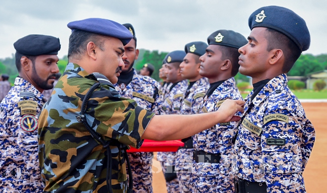 Flying Officer DMCAK Bandaranayake and Leading Aircraftman Karunarathna KMPP were adjudged the Best Marksmen of the No 12 and 13 Courses respectively. Leading Aircraftman Madushanka KL was adjudged the Best in Physical Fitness and the Best Student of No 12 Course. Leading Aircraftman Edirisinghe EDGBK and Flight Lieutenant EMCD Budumuththawa were adjudged the Best in Physical Fitness and the Best Student of No 13 Course respectively.