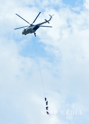 Trainees who are to be selected to enter the RSF Wing, have to undergo a training of 7 months at SLAF Station Morawewa followed by a 2 month training at Sri Lanka Army Special Force Camp, Maduruoya. A total 84 personnel comprising of 4 Officers and 80 Airmen received their RSF Badges form the Commander, the Chief of Staff and the Director Ground Operations.