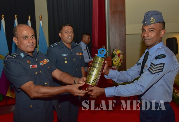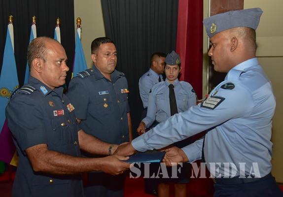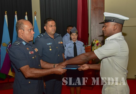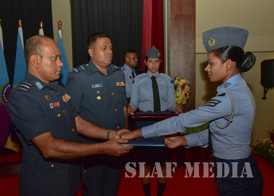 Sergeant Fonseka HFAI (Accounts Assistant) was adjudged as the Best All-Rounder of the No. 5 English Medium Course while Flight Sergeant Duminda GCM (Safety Equipment) and Corporal Chathurangika JADH (Admin Assistant) were adjudged as Best All- Round Senior and Junior Non Commissioned Officers respectively of the No.76 Sinhala Medium Course. Other special award winners are as follows.