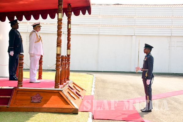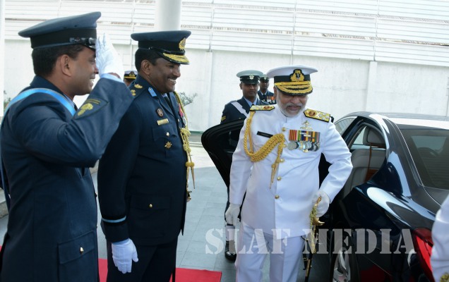 Admiral Ranasinghe was welcomed by the Commanding Officer of Sri Lanka Air Force Station Colombo, Air Commodore GGWTK Gunawardana at the entrance steps of the Air Force Headquarters. During the cordial discussion that followed between the two Commanders, Admiral SS Ranasinghe expressed his satisfaction and appreciation to the Commander of the Air Force for the mutually beneficial cooperation between the two servicesduring his tenure. He also thanked the Air Force Commander for the personal friendship they shared which served to enhance the inter-service cooperation to an even greater level.