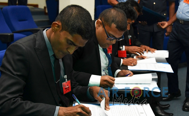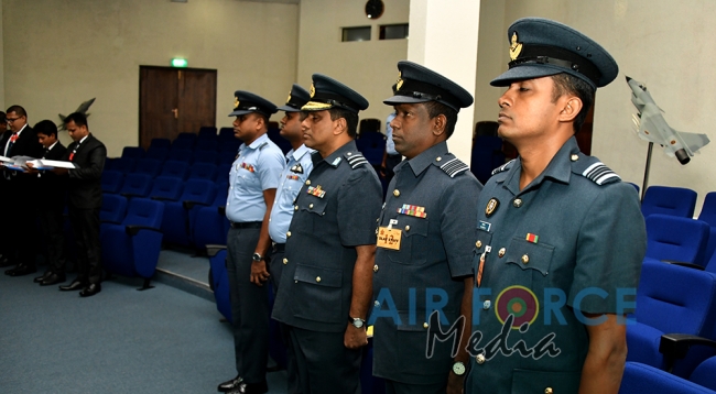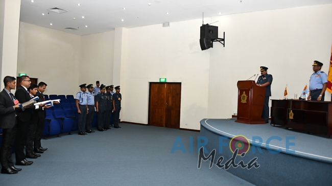 The Commander of the Air Force, Air Marshal Kapila Jayampathy congratulated the newly enlisted Student officers during the oath taking ceremony. The Chief Recruiting Officer Air Commodore Janaka Amarasinghe was also present.