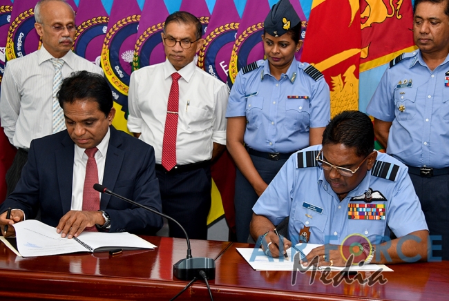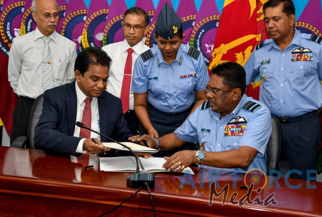 In a bid to address the issue of dry weather and its impact on power generation in Sri Lanka, the Commander of the Air Force, Air Marshal Kapila Jayampathy signed a Memorandum of Understanding (MOU) today (23 January 2019) with the Secretary to the Ministry of Power, Energy and Business Development, Dr. BMS Batagoda with respect to the Cloud Seeding Project of Sri Lanka at Air Force Headquarters.