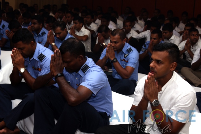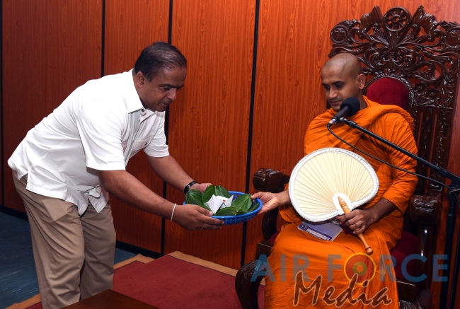 A Dharma Deshana programme presided by Venerable Lunugamwehera Suneetha Thero was held at Air Force Headquarters yesterday (24 January 2019). Senior Officers, Other Ranks and Civilians participated in the programme.