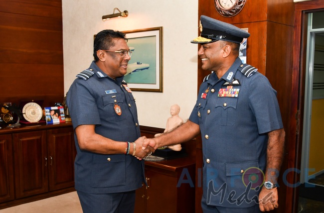 The Vice Chancellor of the General Sir John Kothalawala Defence University, Air Vice Marshal Sagara Kotakadeniya called on the Commander of the Air Force, Air Marshal Kapila Jayampathy at the Air Force Headquarters today (29 January 2019).