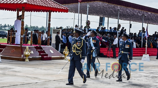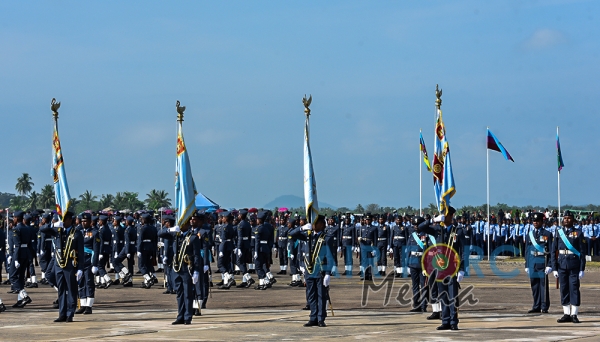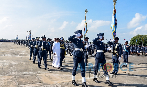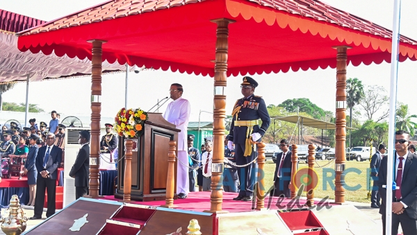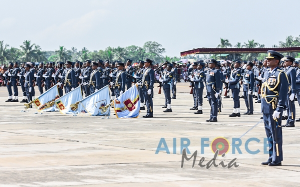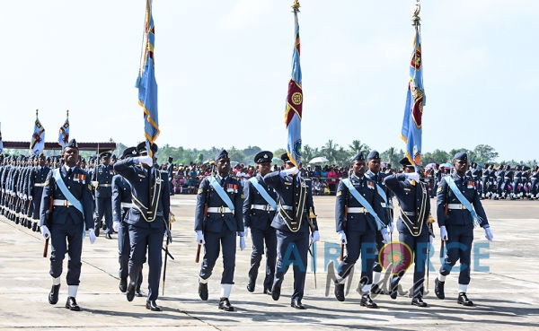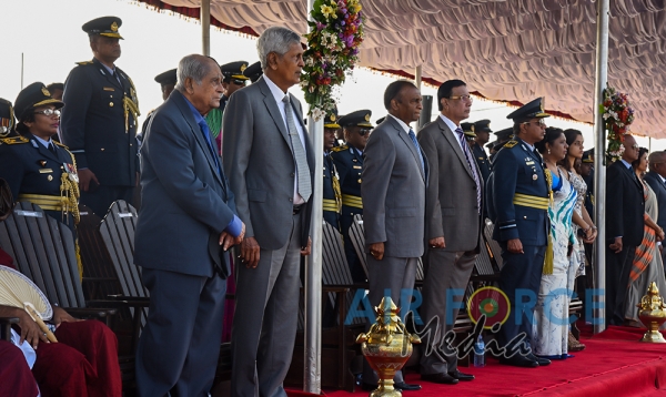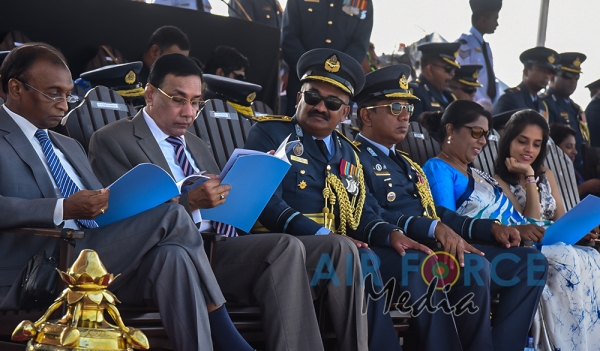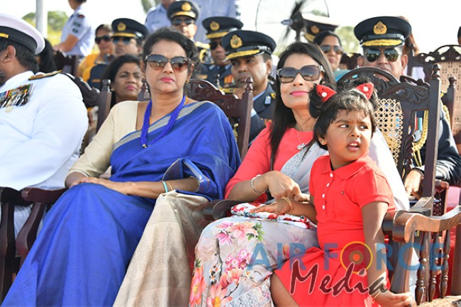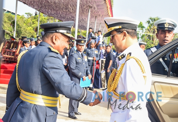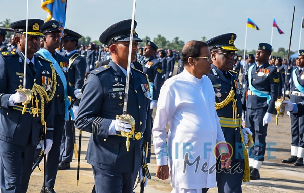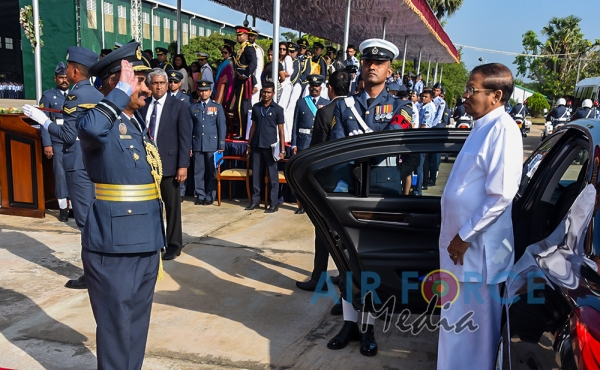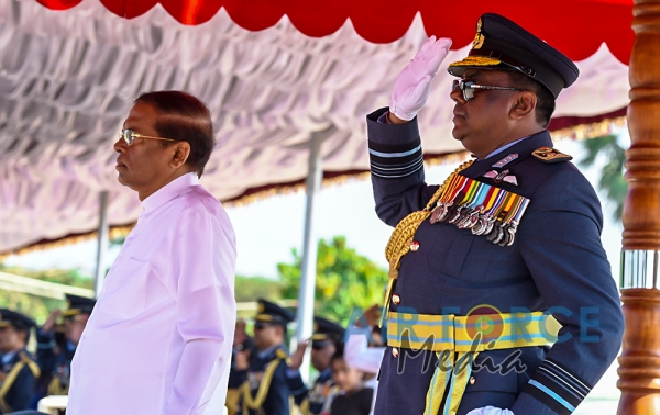 The Chief Guest, the President of the Democratic Socialist Republic of Sri Lanka His Excellency Maithripala Sirisena was received by the Commander of the Sri Lanka Air Force, Air Marshal Kapila Jayampathy. The parade was commanded by Air Commodore Bandu Edirisinghe, the Base Commander of SLAF Base Hingurakgoda and the President’s Colour was taken over by the Commanding Officer of No 7 Squadron, Wing Commander Sameera Gunawardhane and the Commanding Officer of the No 8 Squadron, Wing Commander Sudil Gamage. Hon. State Defence Minister Ruwan Wijayawardane, Chief of Defence of Staff, Admiral Ravindra Wijegunaratne, Commander of the Sri Lanka Army, Lieutenant General Mahesh Senanayake, Members of the Air Force Board of Management, Senior Officers and other ranks of the tri forces were also present at the occasion.
