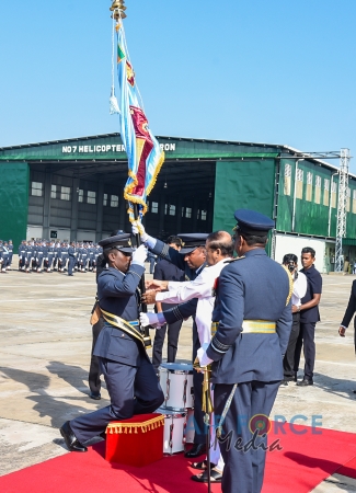 The SLAF was first awarded with the President’s Colour in 1976. On the occasion of SLAF Golden Jubilee, SLAF Base Katunayake and No 1 Flying Training Wing Anuradhapura were honoured with the President’s colour as the pioneer Base and Flying Formation of the Air Force. In the year 2009 SLAF No 2 Transport Squadron, No 4 VIP Transport Helicopter Squadron, No 9 Fighter Helicopter Squadron, No 10 Kfir Squadron and the Sri Lanka Air Force Regiment joined this elite group of formations whose contribution to the nation was recognized with the award of the President’s Colour.