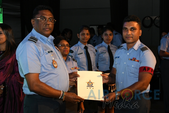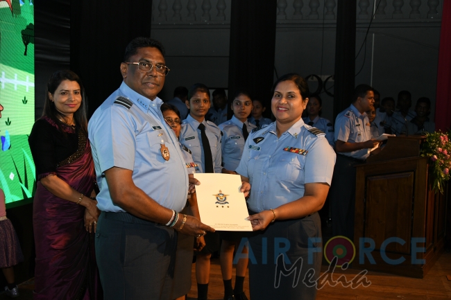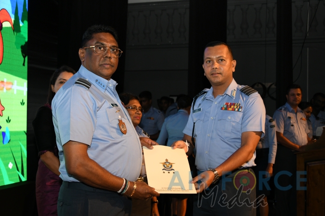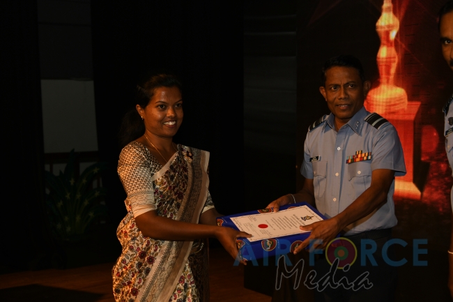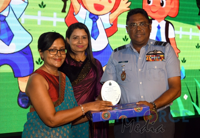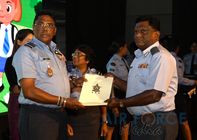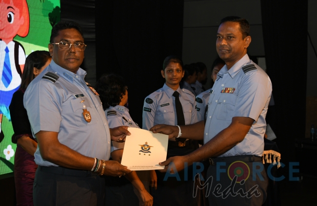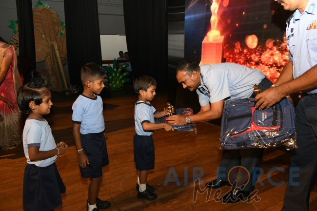 Panel of judges made up of Mrs. Prabhica De Zoysa, Mrs. Vasantha Fernando, Mrs. Sandya Jayasinghe and Mrs. Violet Siriwardene, Technical Adviser to SLAF Pre-Schools, the Base Commanders, Commanding Officers and Pre-School Off I/Cs of award winning Pre-Schools were felicitated by the Commander. Pre-School teachers of winning Pre-Schools were appreciated with certificate and gifts while Pre-School children of the winning Pre-Schools attended the ceremony and received gifts as well. Selected items from Pre-school concerts and dancing items by SLAF Dancing troupe suitable for kids were performed on stage for the entertainment of the audience including kids.